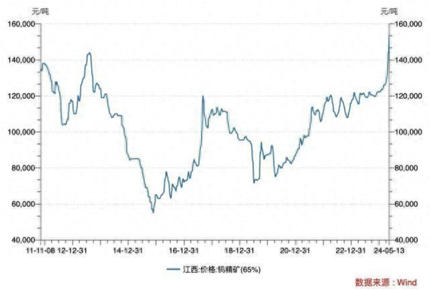4月以來,被譽為“工業牙齒”的金屬鎢價持續走高。據Wind數據統計,5月13日,江西地區65%品位的鎢精礦均價達到了15.35萬元/噸,相比4月1日12.65萬元/噸的價格,上漲了21.34%,較年初上漲25.58%,創下了自2013年以來的新高。