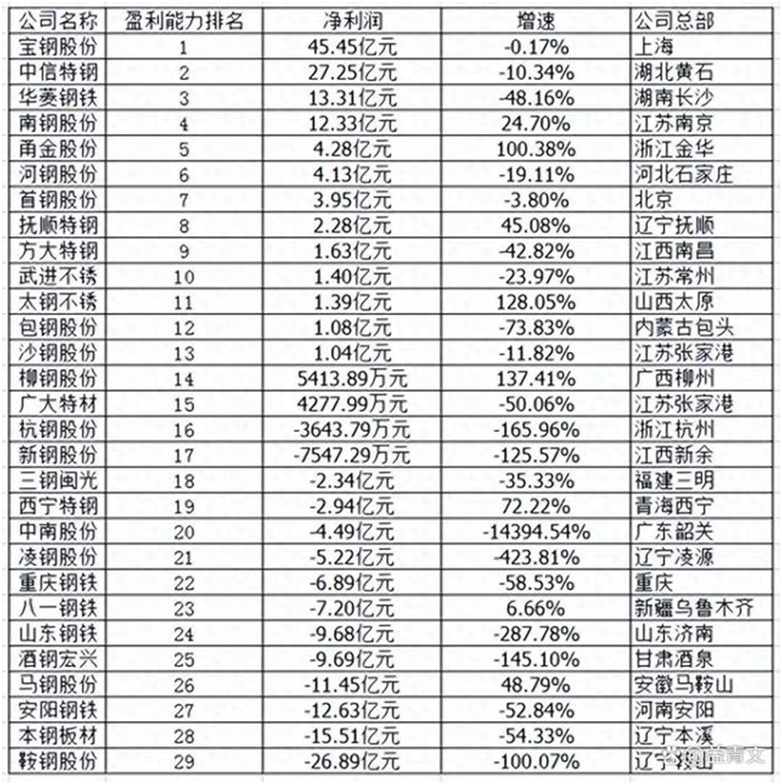 在29家上市鋼企中,有15家企業(yè)在2024年上半年實(shí)現(xiàn)盈利,另外14家則是出現(xiàn)虧損。其中,寶鋼集團(tuán)上半年實(shí)現(xiàn)凈利潤最高,為45.45億元;而鞍鋼股份虧損最多,上半年虧損達(dá)26.89億元。山東省屬鋼鐵企業(yè)山東鋼鐵,上半年則是虧損9.68億元,同比下降287.78%。